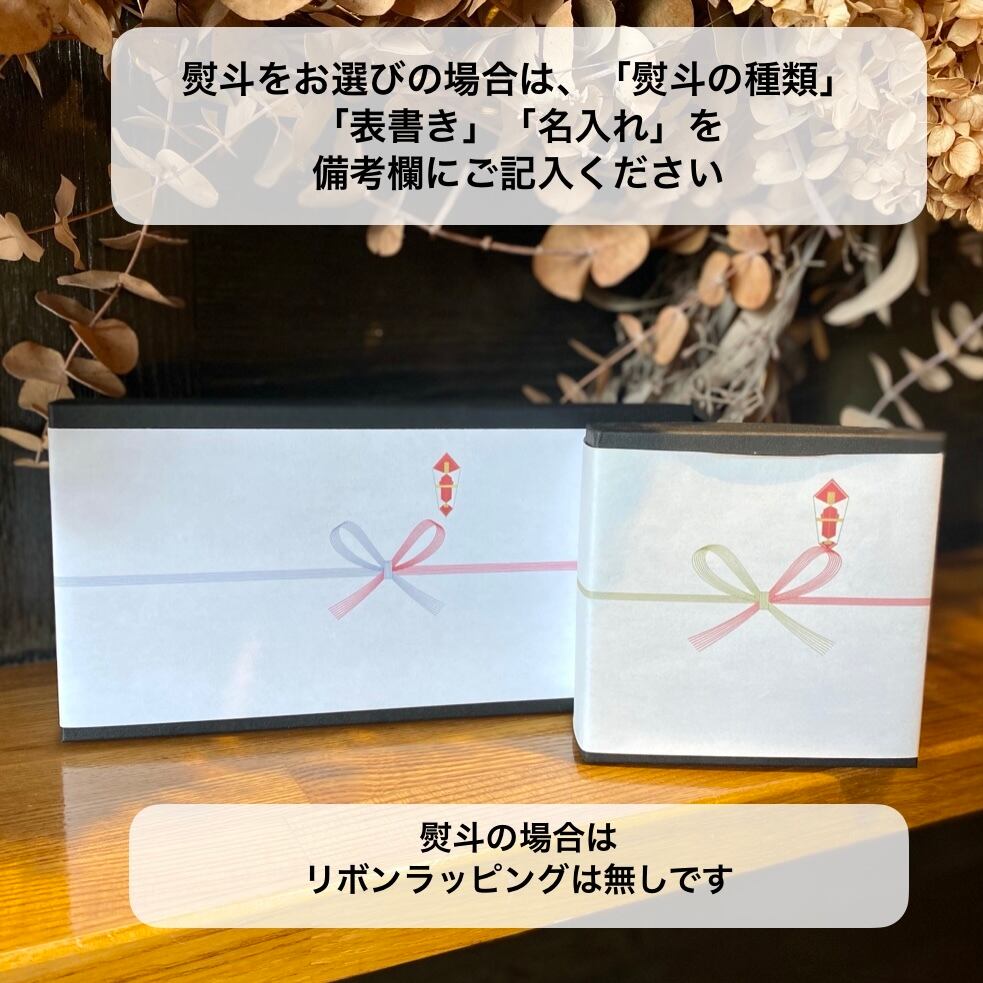 *熨斗をご希望の方は、備考欄に「表書き」と「名入れ」のご希望を記入ください。