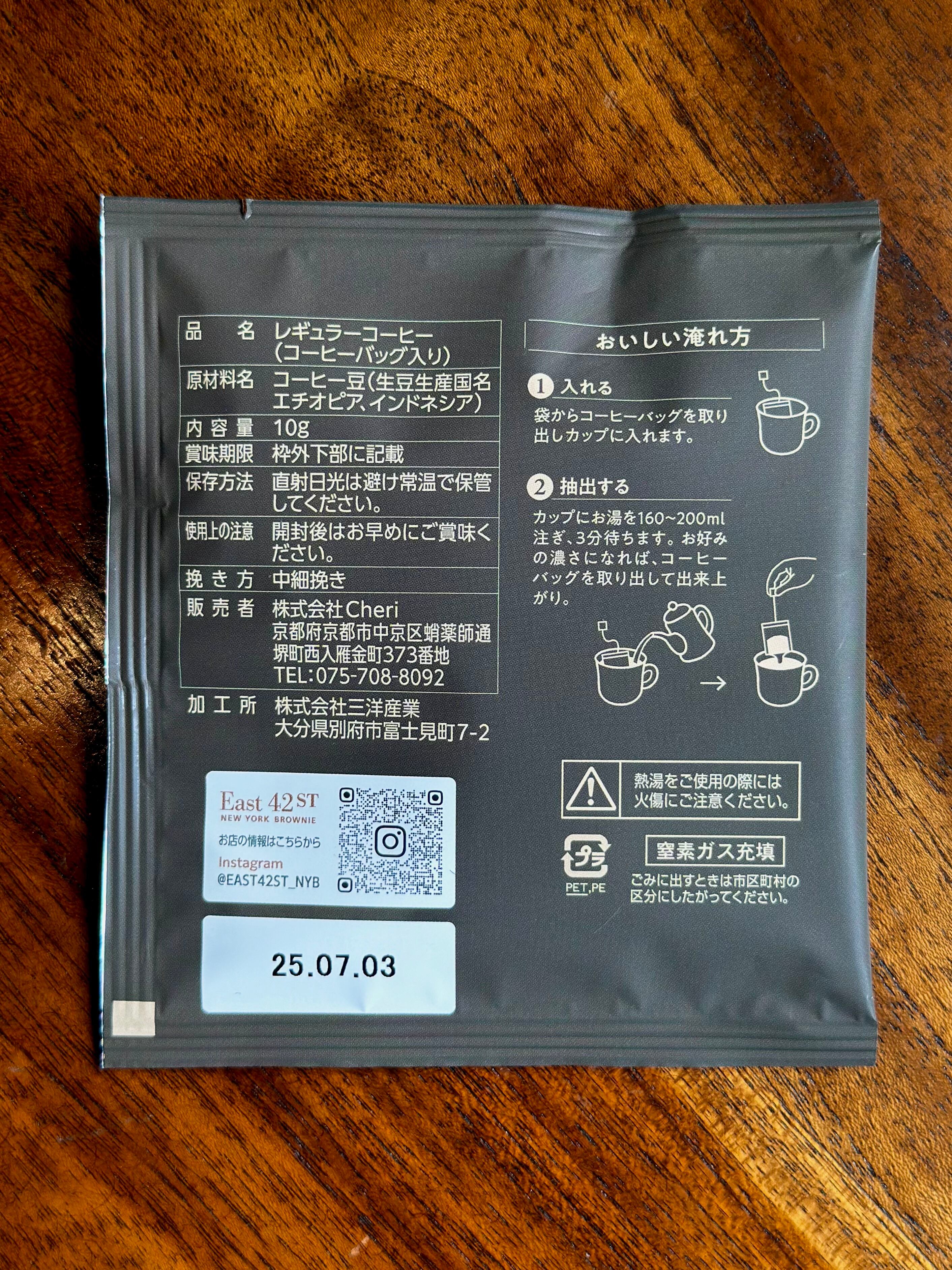 コーヒーバッグは、2025年7月3日までのものを発送しています。